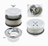 Air Cleaner Assembly - Deep Dish - 4 in Round - 4 in Tall - 2-5/16 in or 2-5/8 in Carb Flange - Raised Base - Steel - Chrome - Kit