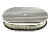 Air Cleaner Assembly - 12 in Oval - 2 in Tall - 5-1/8 in Carb Flange - Raised Base - Finned - Aluminum - Polished - Kit