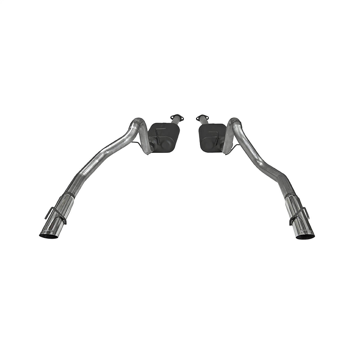For the person who is looking for a complete Flowmaster® cat-back dual exhaust system with an aggressive tone. With easy fit in mind, this American Thunder® exhaust system features mandrel-bent 2.50-inch aluminized steel tubing for maximum performance and includes a pair of specially selected Super 40® Series performance mufflers for a deep powerful sound. The custom tailpipes feature added clearance and exit in the factory location with large 3.00-inch polished tips. The system uses the factory hanger locations for an easy install and delivers a moderate to aggressive interior and exterior tone, best suited to the enthusiast who wants their performance to be heard. Like all Flowmaster systems, the benefits include improved throttle response, power and mileage and are designed for an easy fit. The system includes all necessary parts, hardware and instructions for an easy installation you can do at home. Covered by our 3-year Limited Warranty. If you prefer a full stainless steel system covered by our Lifetime Limited Warranty, check out our cat-back exhaust system #817312.