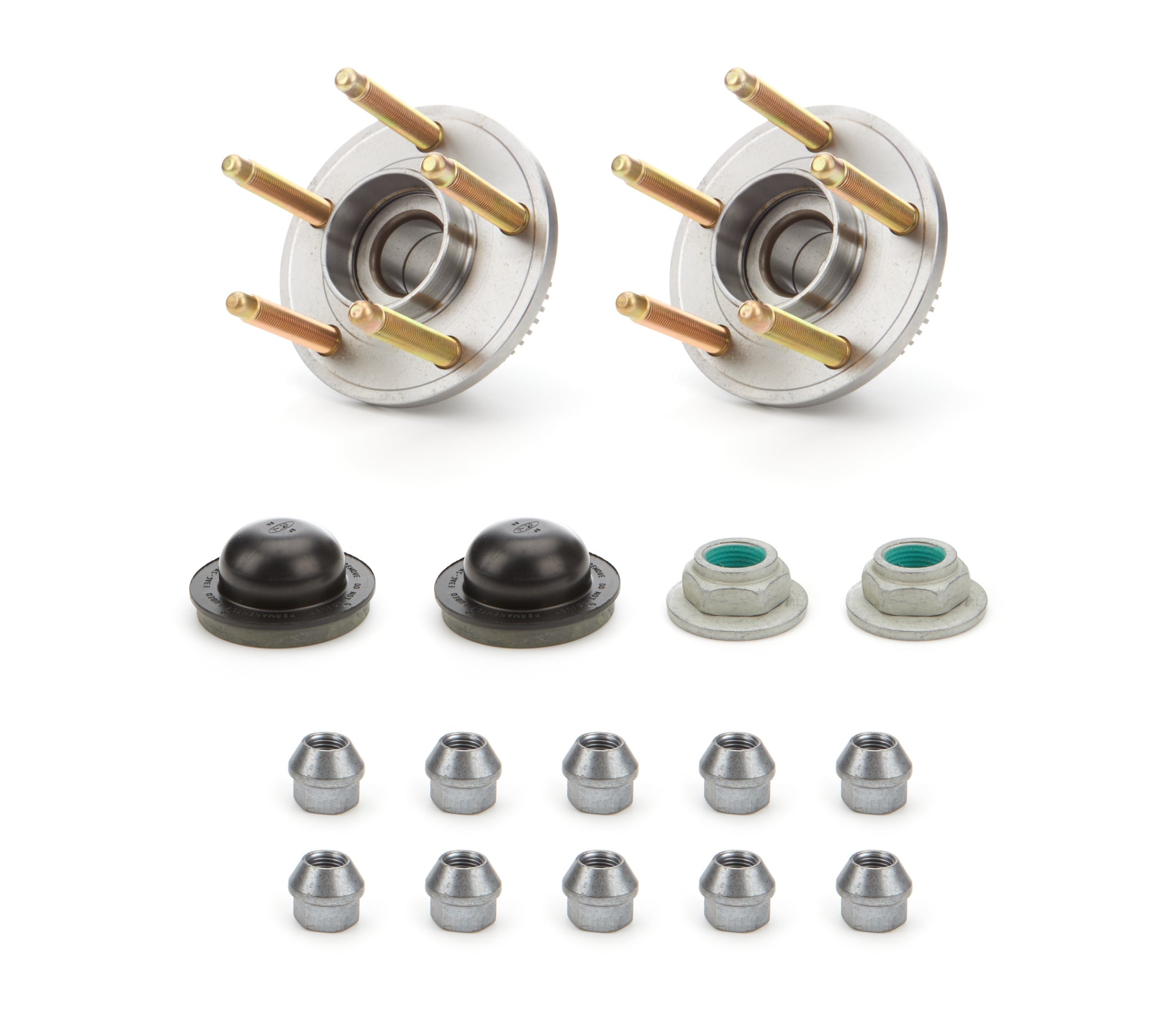 Wheel Hub - Front - 5 x 4.50 Wheel - Dust Cap / Axle Nut / Lug Nuts / ARP Studs Included - Steel - Natural - Ford Mustang 2015-23 - Pair