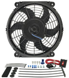 Electric Cooling Fan - Tornado - 10 in Fan - Push / Pull - 650 CFM - 12V - Curved Blade - 11.25 x 10.625 in - 2.5 in Thick - Install Kit - Plastic - Kit