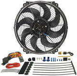 Electric Cooling Fan - Tornado - 16 in Fan - Pull / Pusher - 2175 CFM - 12V - Curved Blade - 16.75 x 15.5 in - 3.875 in Thick - Install Kit - Plastic - Kit