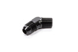Fitting - Adapter - 45 Degree - 8 AN Male to 3/8 in NPT Male - Aluminum - Black Anodized - Each