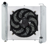 Radiator and Fan - 22.5 in W x 22.75 in H x 6.75 in D - Driver Side Inlet - Passenger Side Outlet - Aluminum - Polished - Chevy Corvette 1961-62 - Kit