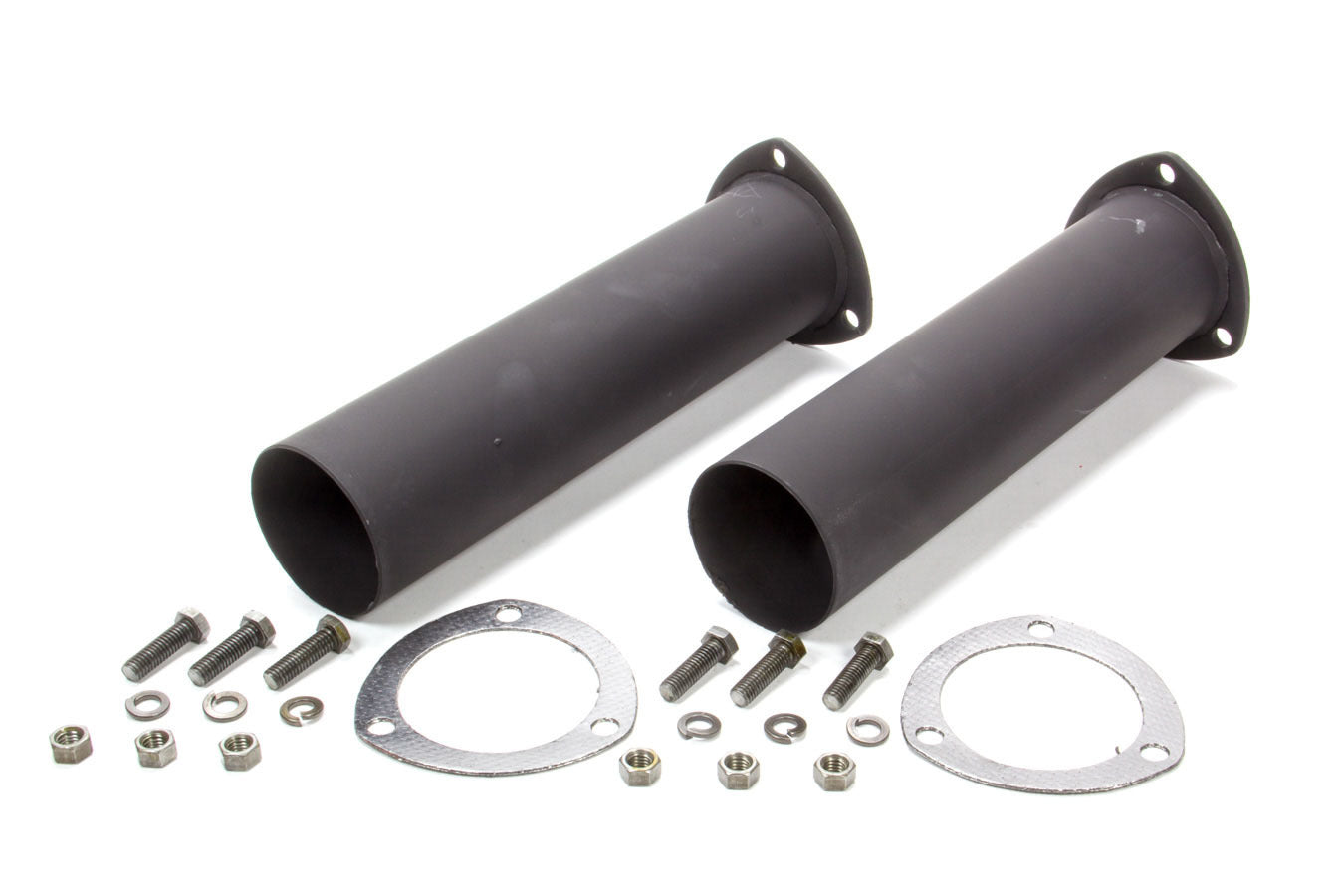 Collector Reducer Extension - Afterburner Thrust Toobs - 3 in 3-Bolt Inlet to 3 in Outlet - 12 in Long - Gaskets / Hardware Included - Steel - Pair