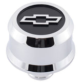 Breather - Push-In - Slant-Edge - 1-1/4 in Hole - Reusable - Raised Black / Chrome Bowtie Logo - Aluminum - Chrome - Each