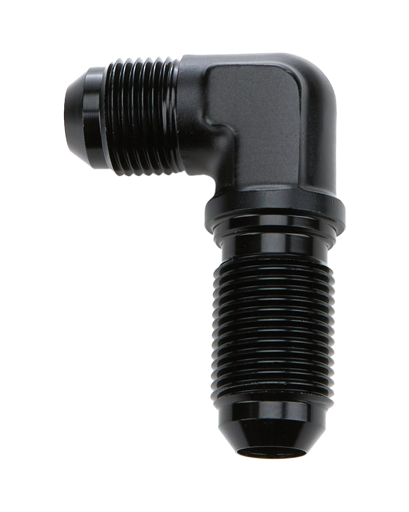 Fitting - Bulkhead - 90 Degree - 8 AN Male to 8 AN Male Bulkhead - Aluminum - Black Anodized - Each