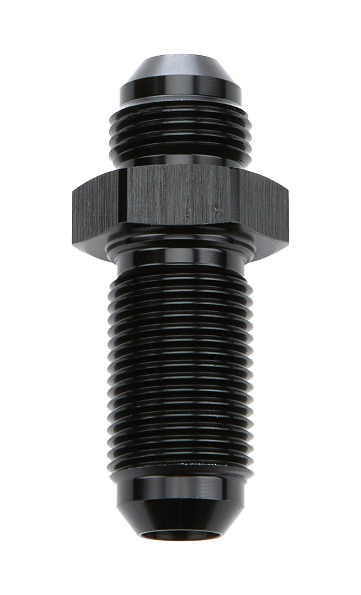 Fitting - Bulkhead - Straight - 8 AN Male to 8 AN Male Bulkhead - Aluminum - Black Anodized - Each