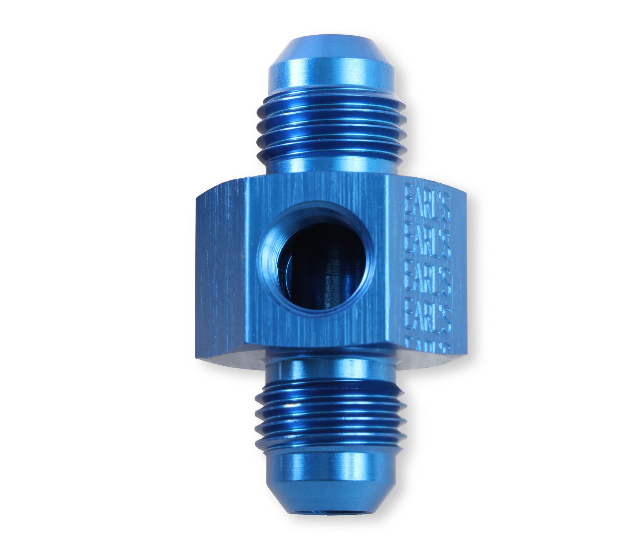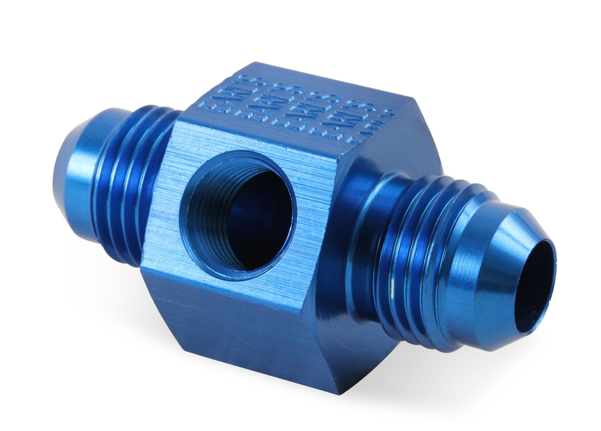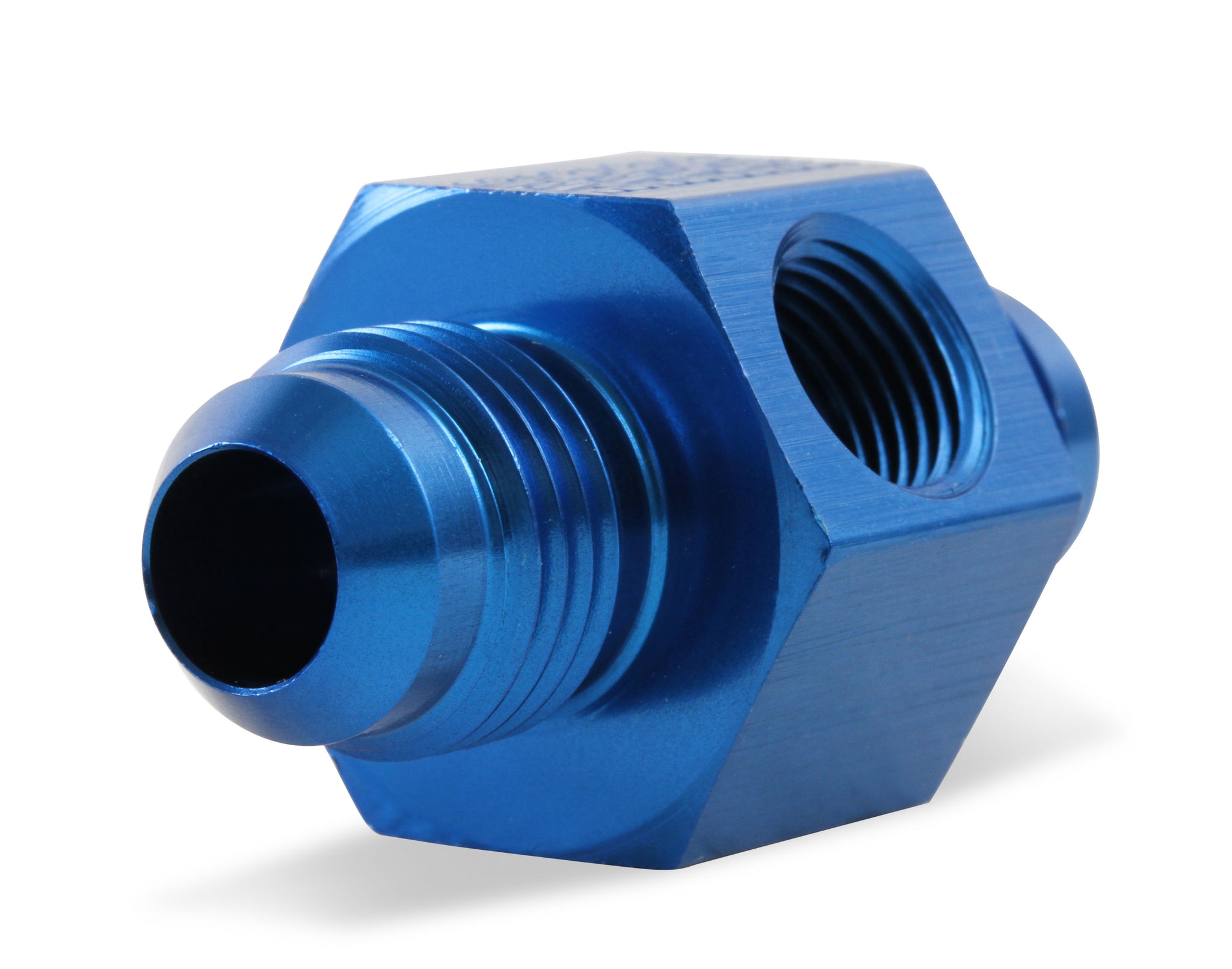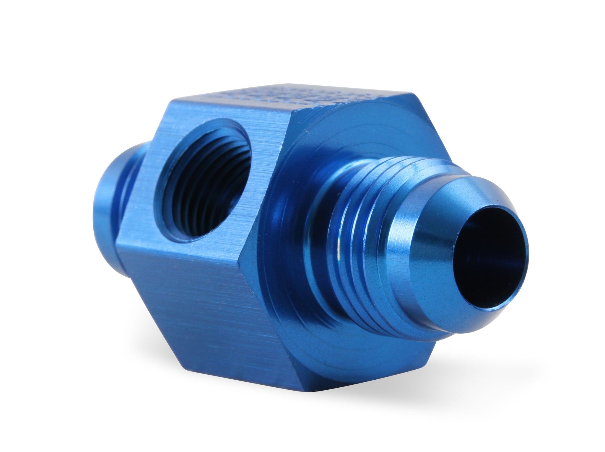 Fitting - Gauge Adapter - Straight - 6 AN Male to 6 AN Male - 1/8 in NPT Gauge Port - Aluminum - Blue Anodized - Each