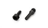 Fitting - Adapter - Straight - One 5/8-18 in Inverted Flare Female to 3/8 in Hose Barb - One 5/8-18 in Inverted Flare Male to 3/8 in Hose Barb - Aluminum - Black Anodized - Kit