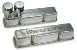 Valve Cover - Tall - Ribbed - Breather Tubes - Breathers / Hardware Included - Moroso Logo - Aluminum - Polished - Small Block Chevy - Pair
