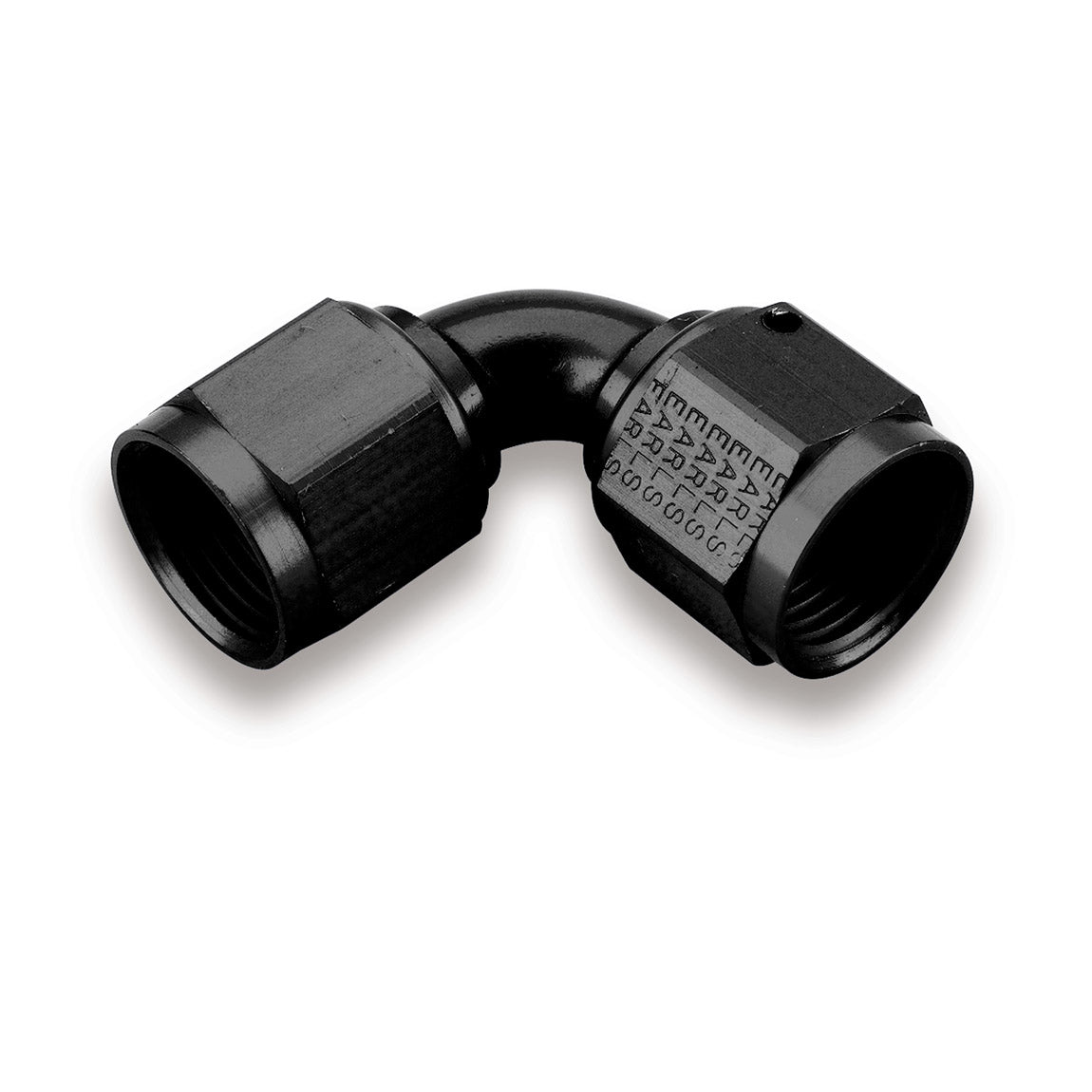 Fitting - Adapter - 90 Degree - 6 AN Female Swivel to 6 AN Female Swivel - Aluminum - Black Anodized - Each